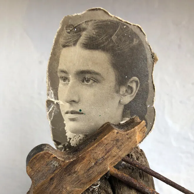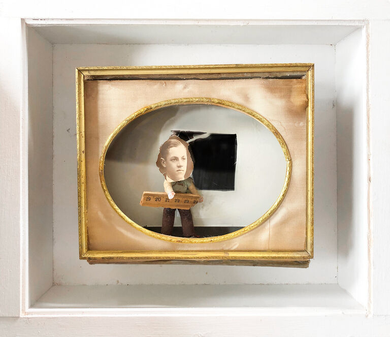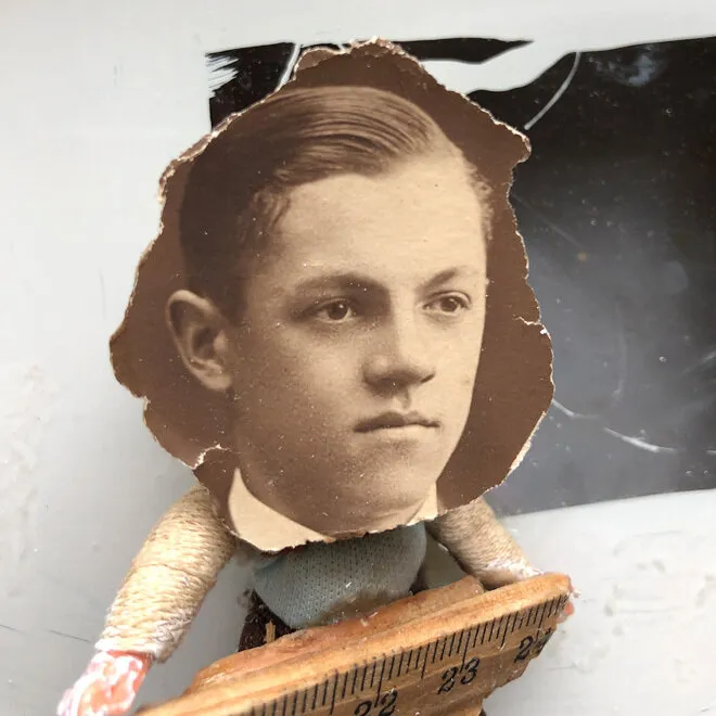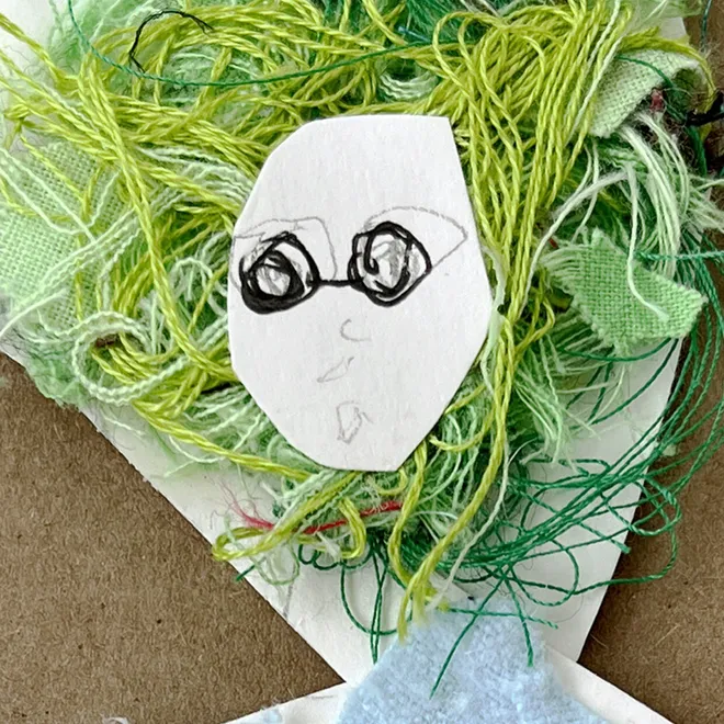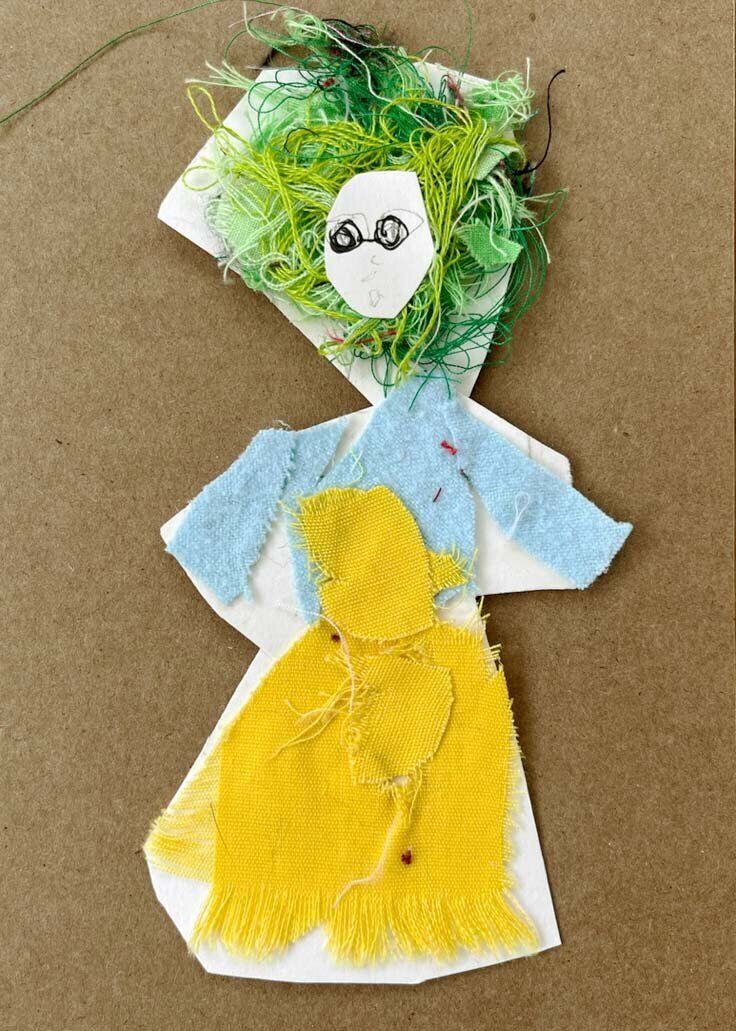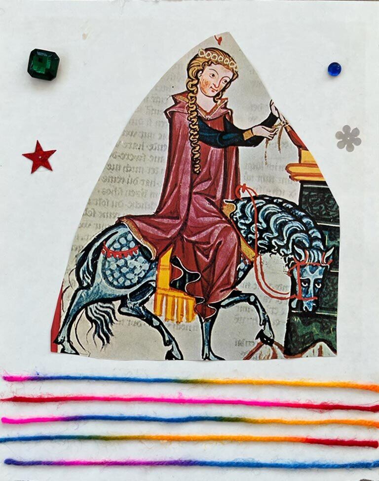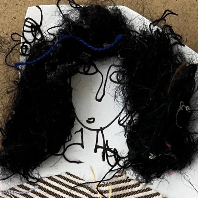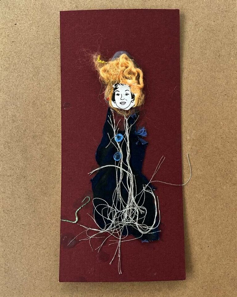 Michela Davidson is from Boston and has been attending Gateway Arts since 2021. Davidson grew up surrounded by artists and has been creating since a young age. She enjoys working with a wide variety of materials but has a particular fondness for collage and embroidery. She loves vintage fashion and often draws inspiration from old photographs and objects. Davidson’s work has been shown at the Fort Point Artists’ Community.